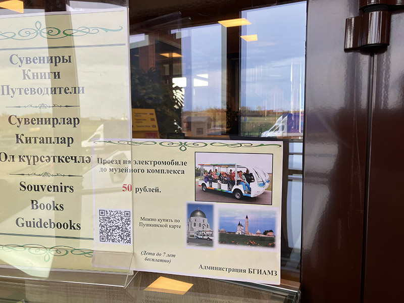 Отношение же администрации музея к гостям всерьез разочаровало. Все кругом платное, комфорт гостей никого не интересует. Поэтому не считаю себя вправе советовать здесь непременно побывать. Кого-то такое потребительское отношение к гостям заповедника не смущает, но меня – очень. Не в каменном веке живем. Ну да, на саму территорию городища вход бесплатный, а дальше топай пешком полтора километра туда и примерно столько же обратно, а что между походами уже ни сил, ни времени на осмотр не останется, — да кого это волнует. Главное — сувениров побольше набери, заплати за проезд и не забудь приобрести билеты везде, включая туалет. Автобусы пропускают, конечно. И какие-то машины тоже, на наших глазах преспокойно въехало авто с питерскими номерами. Летом тут, как я поняла по отзывам, еще и дают напрокат электросамокаты – представляю, как приятно гулять по городищу и любоваться памятниками, уворачиваясь от СИМов, не хуже, чем в Москве. Раздосадованные всем происходящим, мы прошлись по Болгару, составили общее впечатление о древностях и уехали в Ульяновск.