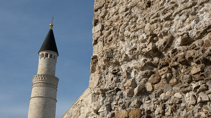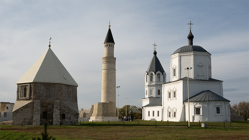 Посреди мусульманских памятников архитектуры стоит православный храм — Успенский, основанный по указу Петра Первого «для охоронения» древней булгарской столицы. Потом храм стал приходским, монастырь упразднили — за то, что монахи некачественно охраняли исторические руины. В 1841 году Большой минарет рухнул и повредил колокольню храма, ее пришлось перестроить заново.