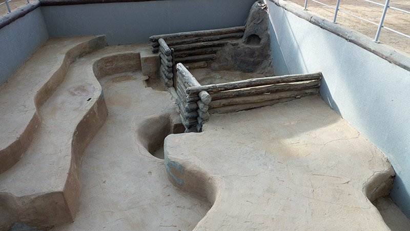 На самом берегу реки стоит накрытый широким шатром законсервированный раскоп на месте ханского дворца. Даже не то чтобы раскоп, а некоторые находки и раскопки.