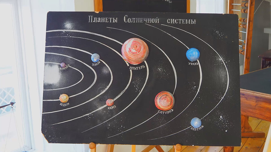 У нас представлена реконструкция кабинета естествознания. Примерно в таком кабинете Циолковский преподавал. У него была своя методика: наглядность, наглядность, наглядность. И эмоции, надо обязательно задеть эмоции детей, не заденем эмоции – дети не запомнят.