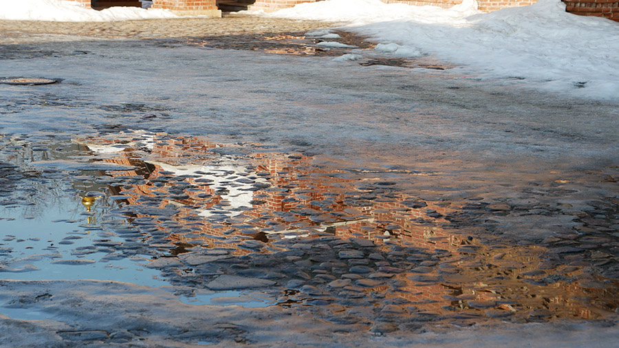 Немного поскальзываясь на снегу и ледяных островках, мы вышли за пределы стены, чтобы полюбоваться на палаты с другой стороны.
