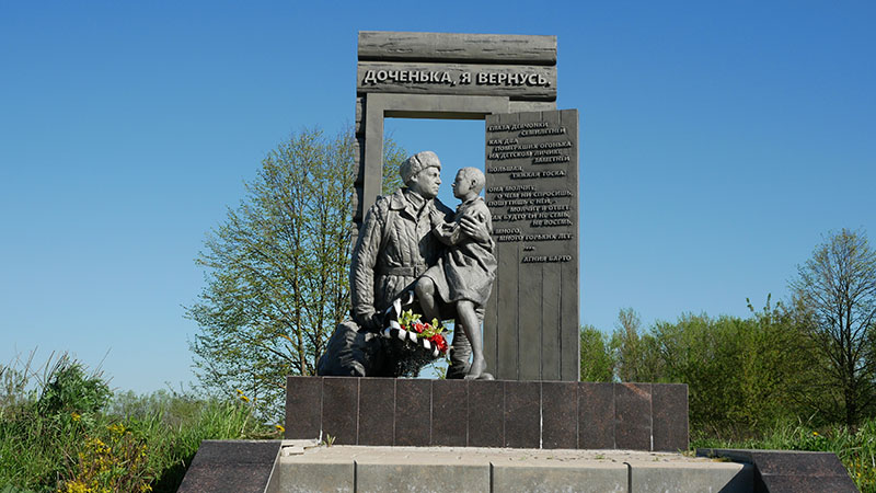 От Козельска совсем недалеко до Белёва – через границу областей. Приехали мы в Белёв, доехали к новому военному памятнику – посвященному не только солдатам, но и их детям.